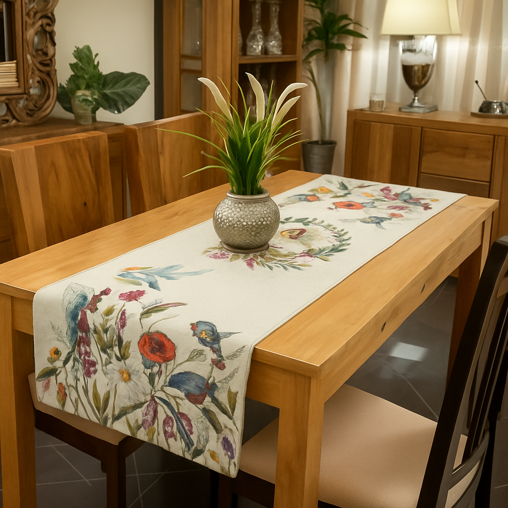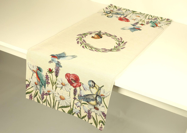 Gobelinowy bieżnik to ponadczasowy dodatek, który nada Twojemu wnętrzu nutę elegancji i klasy. Subtelny odcień tła w połączeniu z wyrazistym wzorem tworzą efektowną kompozycję, idealną zarówno na codzienne nakrycie stołu, jak i wyjątkowe okazje. Wyjątkowa faktura gobelinu pięknie podkreśla dekoracyjny charakter tkaniny, czyniąc z bieżnika element, który przyciąga wzrok i harmonizuje z wnętrzem.