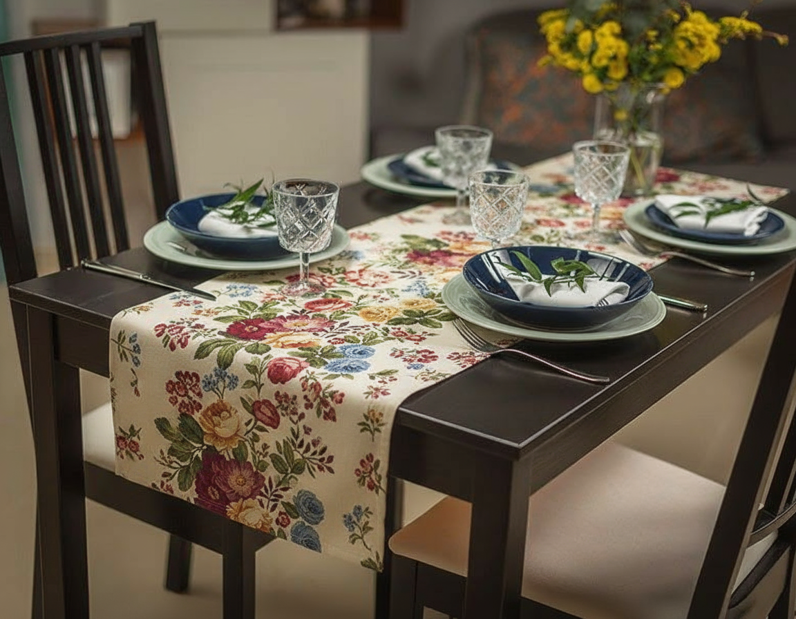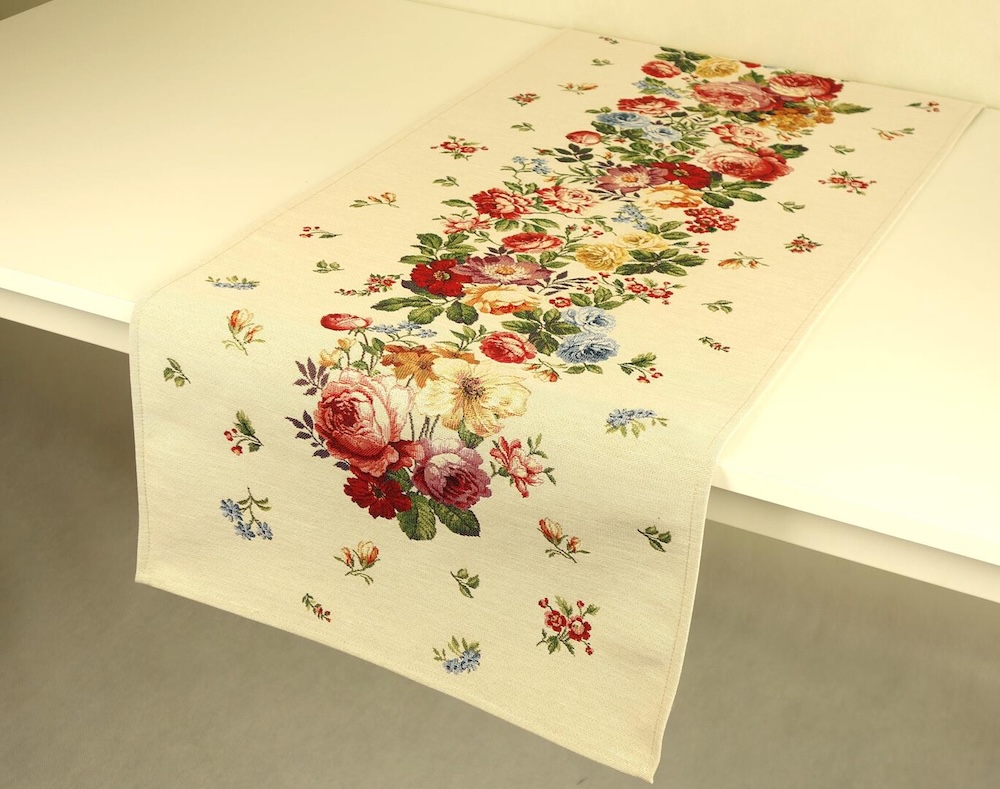 Gobelinowy bieżnik to ponadczasowy dodatek, który nada Twojemu wnętrzu nutę elegancji i klasy. Subtelny odcień tła w połączeniu z wyrazistym wzorem tworzą efektowną kompozycję, idealną zarówno na codzienne nakrycie stołu, jak i wyjątkowe okazje. Wyjątkowa faktura gobelinu pięknie podkreśla dekoracyjny charakter tkaniny, czyniąc z bieżnika element, który przyciąga wzrok i harmonizuje z wnętrzem.